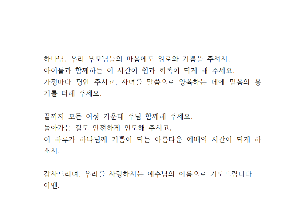 오늘 이 야유회가 우리 아이들에게 기쁨과 웃음이 가득한 시간이 되게 해 주세요.