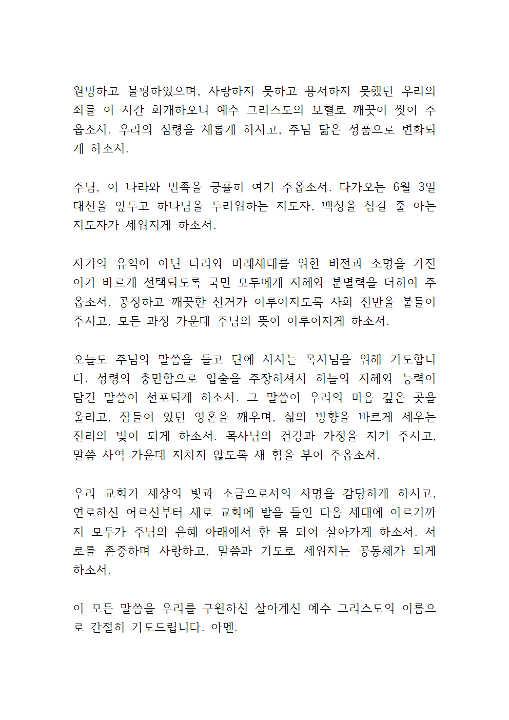 또한, 대선이 한 달도 채 남지 않았기 때문에 이번 글 하단에 있는 대선 기도문도 필요하겠습니다.