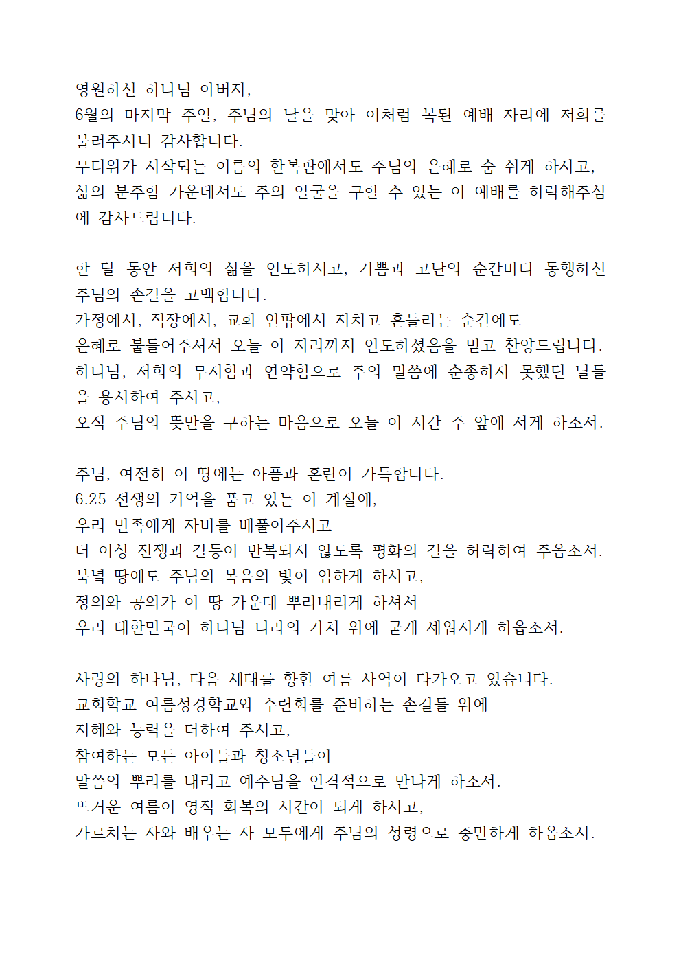 6월 마지막주 대표기도 (2)