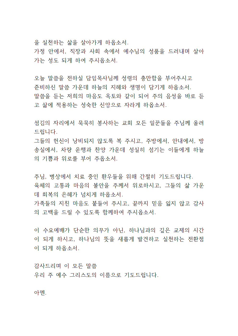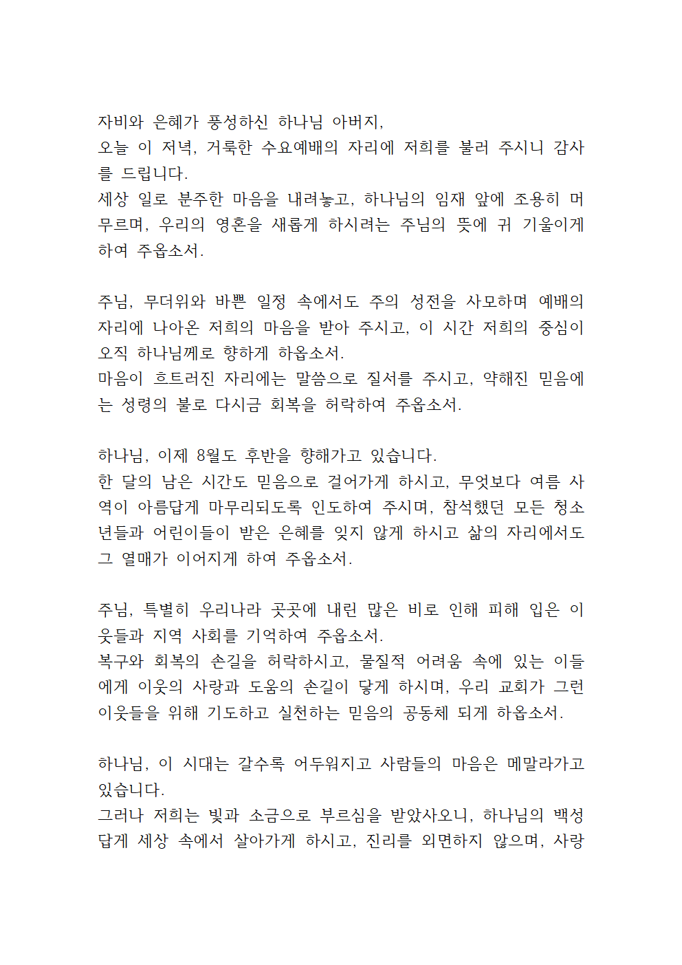 '8월 수요예배 대표기도문 (셋째 주)'